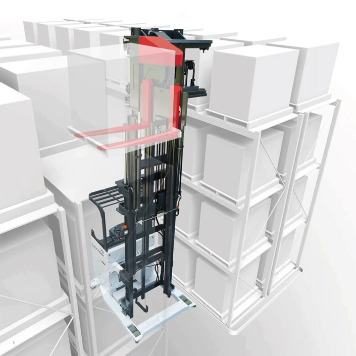 在狹窄的倉庫、貨倉及工作台通道進行趨近自動化的裝卸、堆垛、升降和短距離貨運。